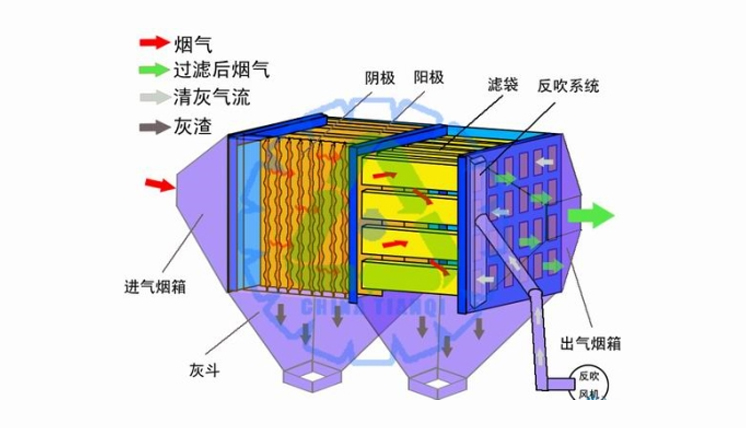 運(yùn)行原理:利用高壓電場產(chǎn)生的靜電力,使粉塵從氣流中分離出來的除塵設(shè)施。
